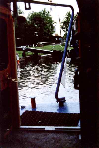The lock gates, seen through the back doorway.